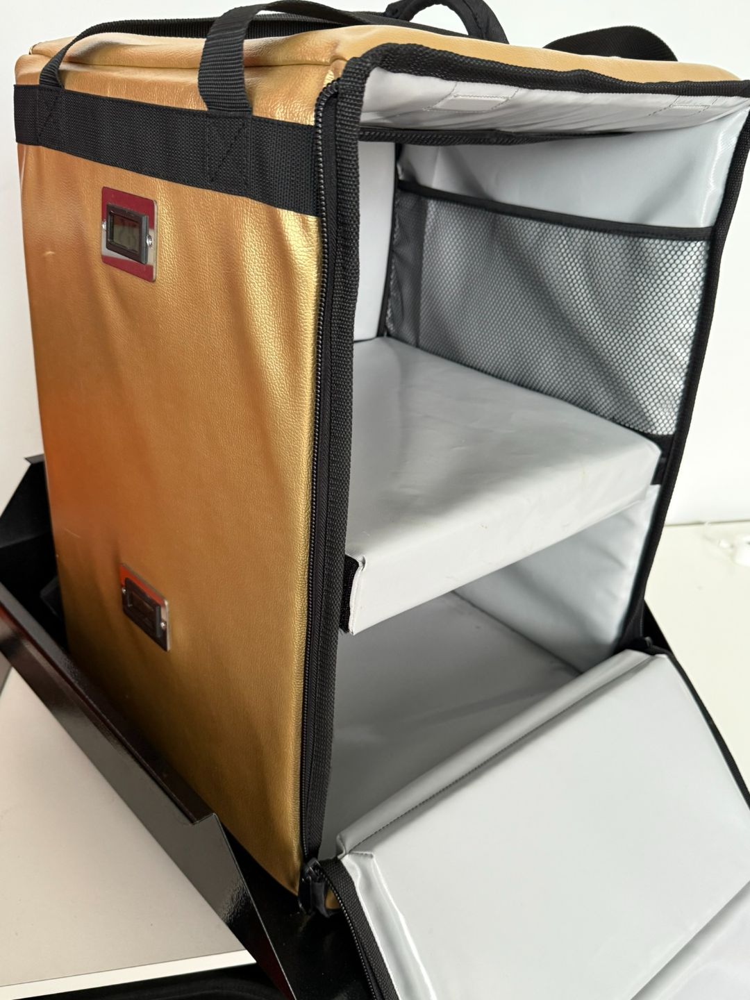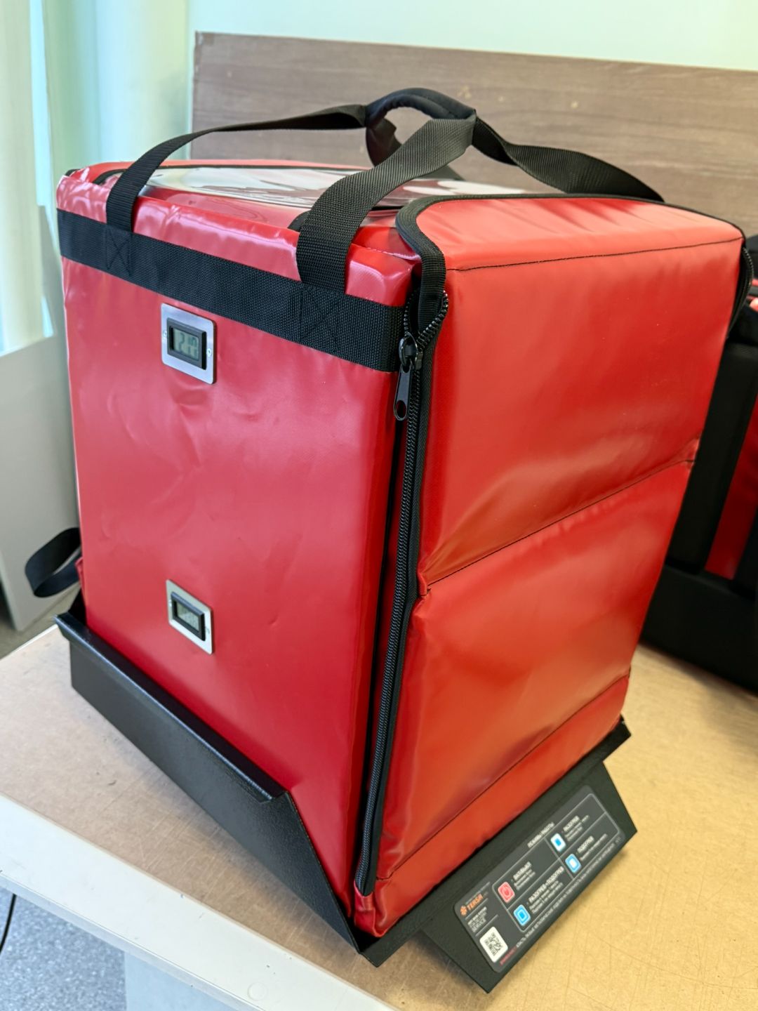 The thermoplate in the thermal bag releases heat for an extended period, allowing 3-4 orders per delivery trip.